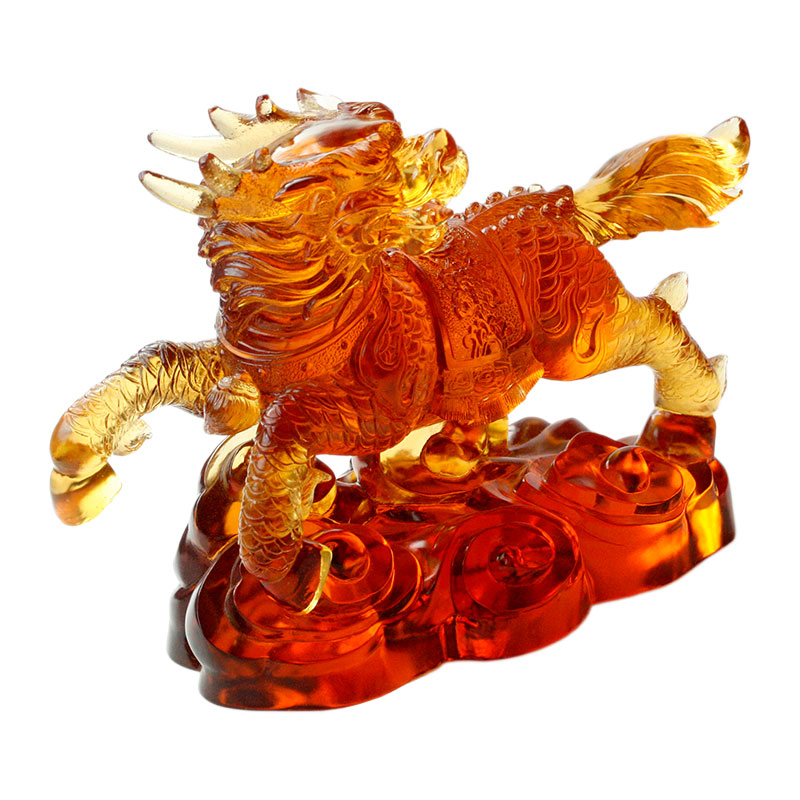 شكل هذا الوحش الزجاجي نابض بالحياة، ويتم تصوير كل التفاصيل بدقة شديدة، بدءًا من تعبيرات وجه الوحش إلى خطوط عضلات الجسم، وحتى الوضع الأنيق للذيل، وكلها تظهر المهارات الرائعة للحرفي. يتبنى هذا الوحش الزجاجي نغمة دافئة ومتعددة الطبقات. يمنحه اللون الكهرماني مزاجًا مهيبًا ومهيبًا، كما لو كان وحشًا حارسًا من أسطورة قديمة. سوف ينكسر الزجاج الضوء الساحر تحت إضاءة الضوء، مما يجعل هذا الوحش الزجاجي يقدم تأثيرات بصرية مختلفة بزوايا مختلفة، مما يزيد من سحره الغامض.