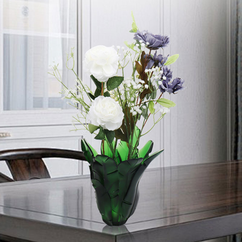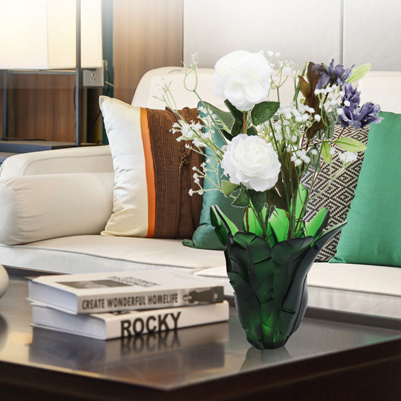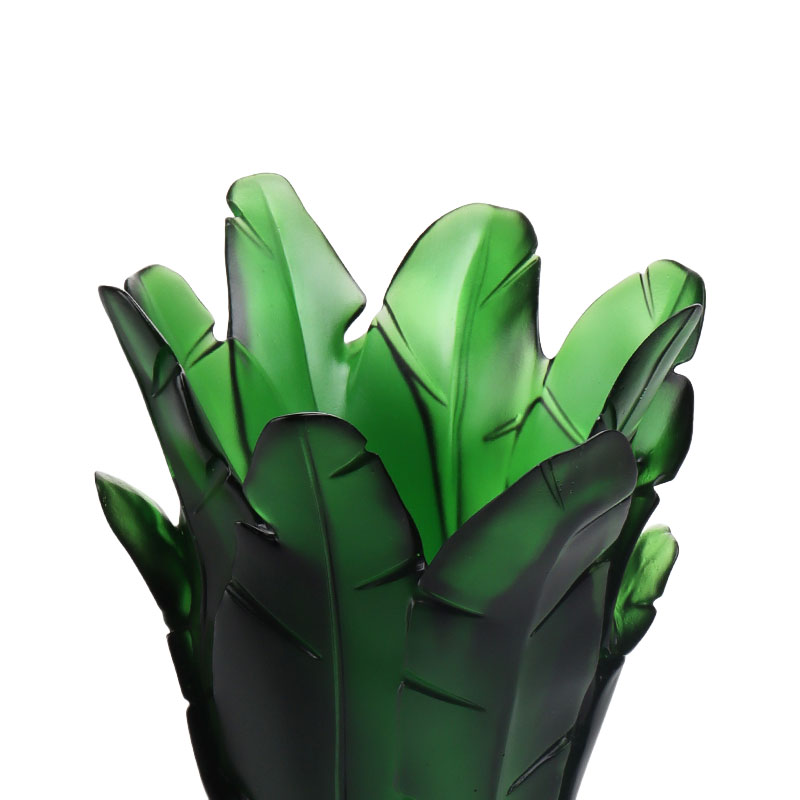 الصفحة الرئيسية / المنتجات / أواني زجاجية كريستالية / مزهرية من الزجاج الكريستالي / ديكور المنزل مزهرية زجاجية من ورق الموز الأخضر